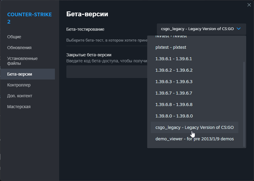 - После этого запустите CS2, и выбранная вами версия будет запущена.